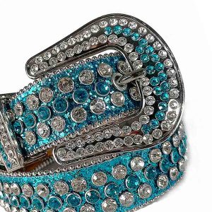 Aqua Blue Turquoise Strap With Diamond White & Aqua Blue Studded Rhinestone Belt