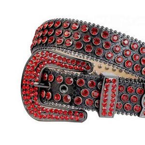 Black Strap With Red Studded Rhinestone Belt with Black Red Buckle