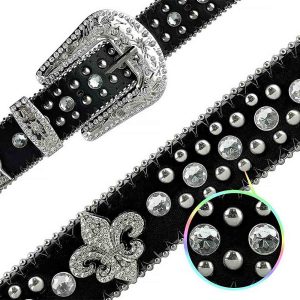 Black Scout With Studs And White Stones Studded Rhinestones Belts