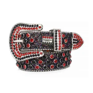 Black Shiny Strap With Bling Red & Black Rhinestone Belt