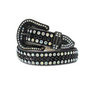 Black Strap With Black & Diamond White Studded Rhinestone BB Belt