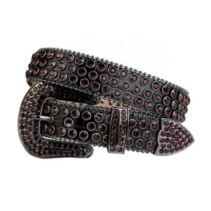 Black Strap With Black & Red Studded Rhinestone Belt