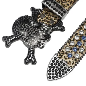 Gengar Buckle Leopard Strap Belt with Black Studded Rhinestones