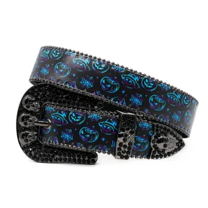 Gengar Buckle Black Strap Belt with Black & Crystal Studded Rhinestones