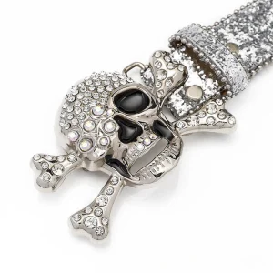 Skull Buckle Silver Shiny Strap With Crystal Studded Rhinestone Belt