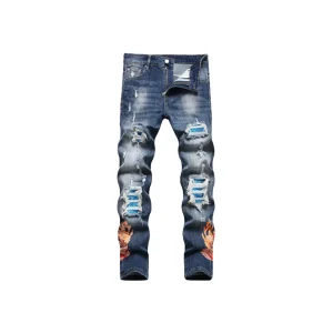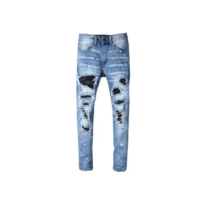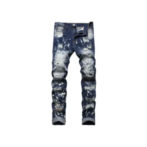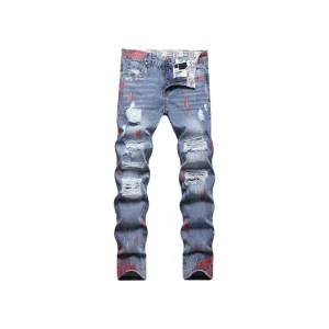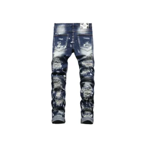 Men’s Distressed Patchwork Skinny Denim Jeans
