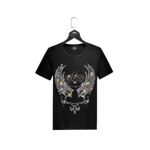Men’s Fashion Crown Rhinestones Short Sleeve T-Shirt