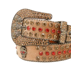 Brown Skull With Crystal Brown & Red Rhinestone Belt