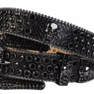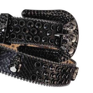 Black Strap With 7 Skulls Black Studded Rhinestone Belt