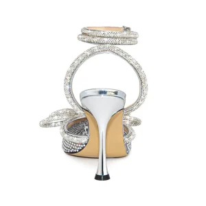 Women’s Glitter Slingbacks Crystal Strappy Tie Up Pointed Toe With Triangle Heel Sandals