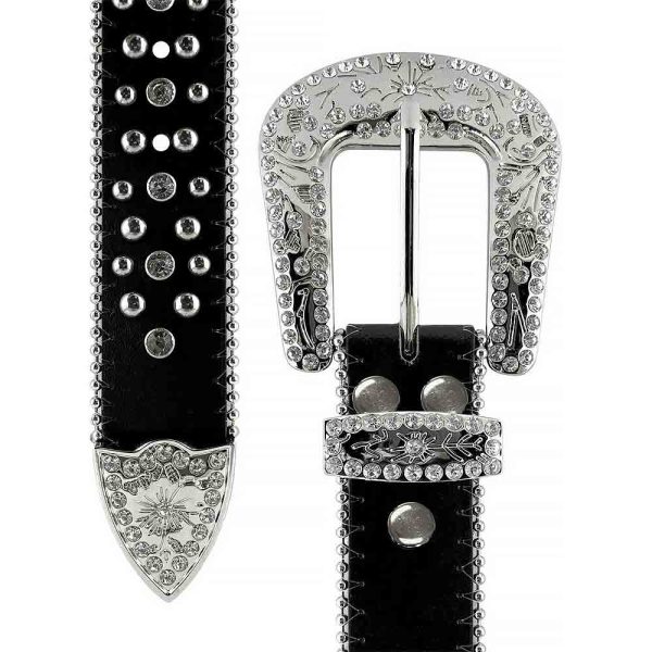 All Black Cross Stones with Studs and White Stones Studded Rhinestones Belts Diamonds