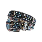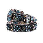 Each rhinestone has been carefully chosen and placed to create a beautiful design that catches the eye. The black and multi-colored rhinestones add just the right amount of sparkle and shine, making this belt a true work of art. The alligator leather adds durability and style to the belt, ensuring it will last for years to come.