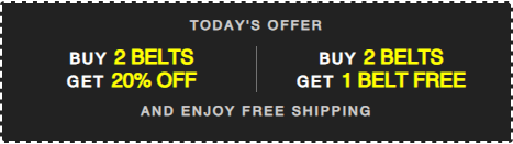 Today’s Offer: BUY 2 BELTS AND GET 1 BELT FREE with free shipping | BUY 4 BELTS AND GET 2 BELT FREE with free shipping
