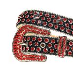 Add some bling to your outfit with our Unisex Fashion Alligator Black Leather Belt. This stunning accessory is designed with red rhinestones that add a touch of glamour to the alligator leather finish. The gold buckle is also embellished with red rhinestones, making it a true statement piece. Whether you’re looking to add some diamond-like shine to your outfit or want to channel your inner hip hop star, this belt is sure to impress.