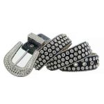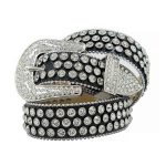 Complete your hip hop look with the Unisex Fashion Alligator Black Leather Belt from Rhinestone Belt Store. This stunning accessory features sparkling white rhinestones that add the perfect touch of bling to the black leather strap. The silver buckle is also decorated with sparkling white rhinestones, making it a must-have for any hip hop enthusiast.