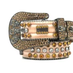 The Brown Skull Buckle with Gold & Crystal Shiny Belt is a unique and stylish accessory that will elevate any outfit