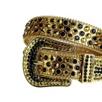 At Rhinestone Belt Store, we understand the importance of having the perfect accessory to complete your outfit. That’s why we’ve crafted this Unisex Fashion Alligator Gold Leather Belt with the utmost care and attention to detail. Our team of experts has worked tirelessly to create a belt that not only looks great but feels great too. Made from high-quality materials, this belt is built to last, ensuring that you can enjoy its bling factor for years to come. Whether you’re dressing up for a night out or simply looking to add some sparkle to your everyday look, this belt is the perfect choice.