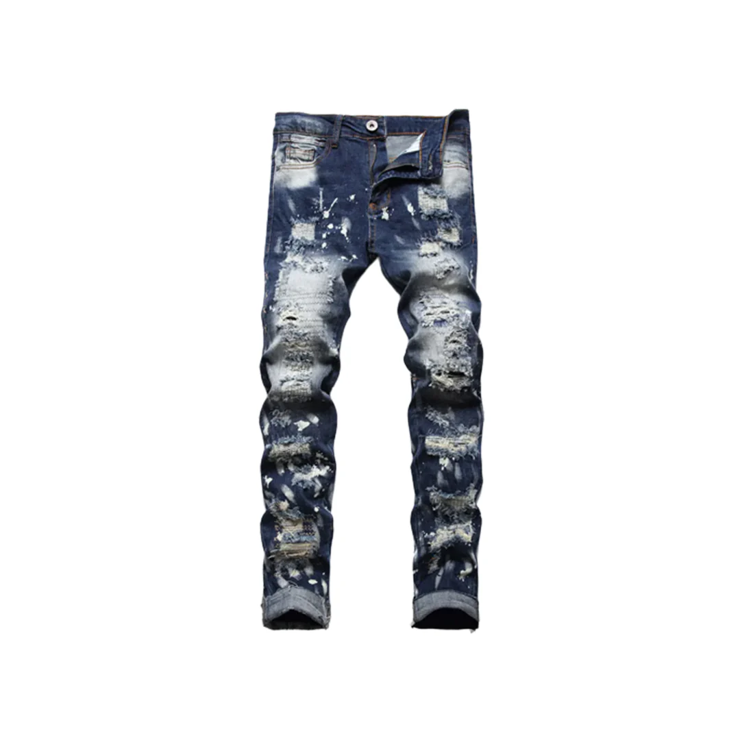 Men’s Distressed Patchwork Skinny Denim Jeans are a unique and fashion-forward choice for those who appreciate the artistry of denim. Crafted from high-quality denim fabric, these jeans offer both style and individuality.