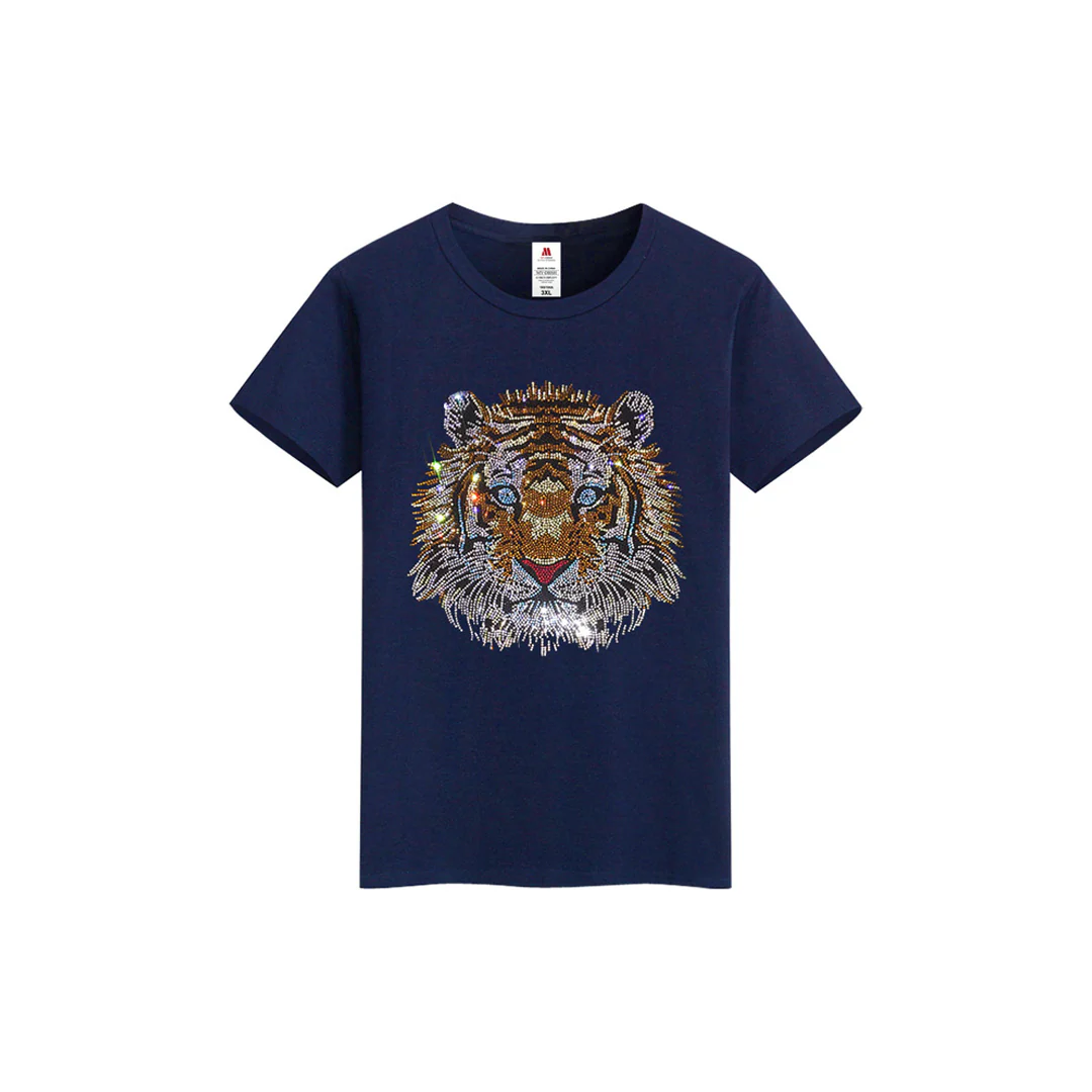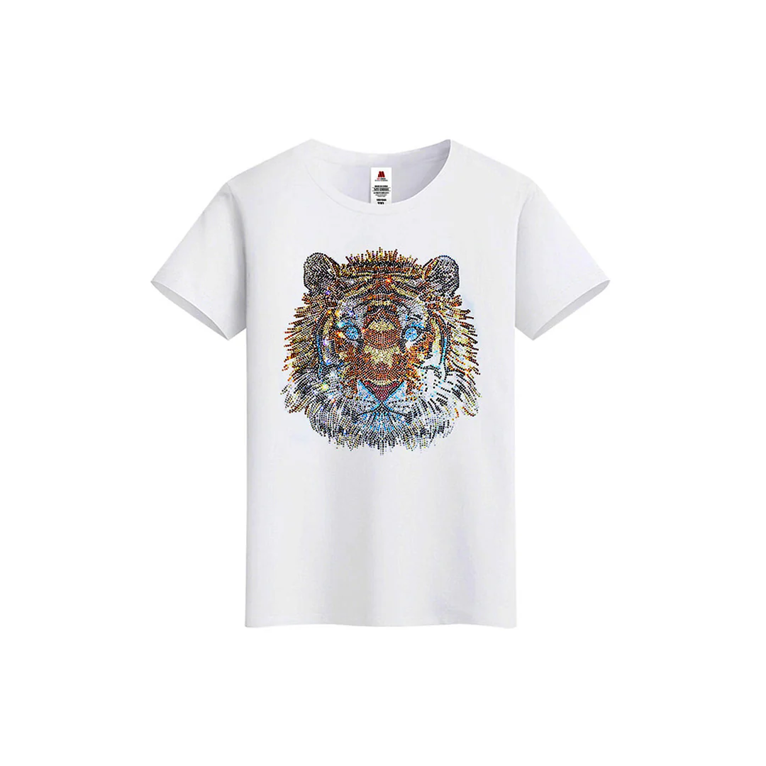 Make a Bold Statement with Men’s Rhinestone Tiger Print Streetwear Short Sleeve T-Shirt