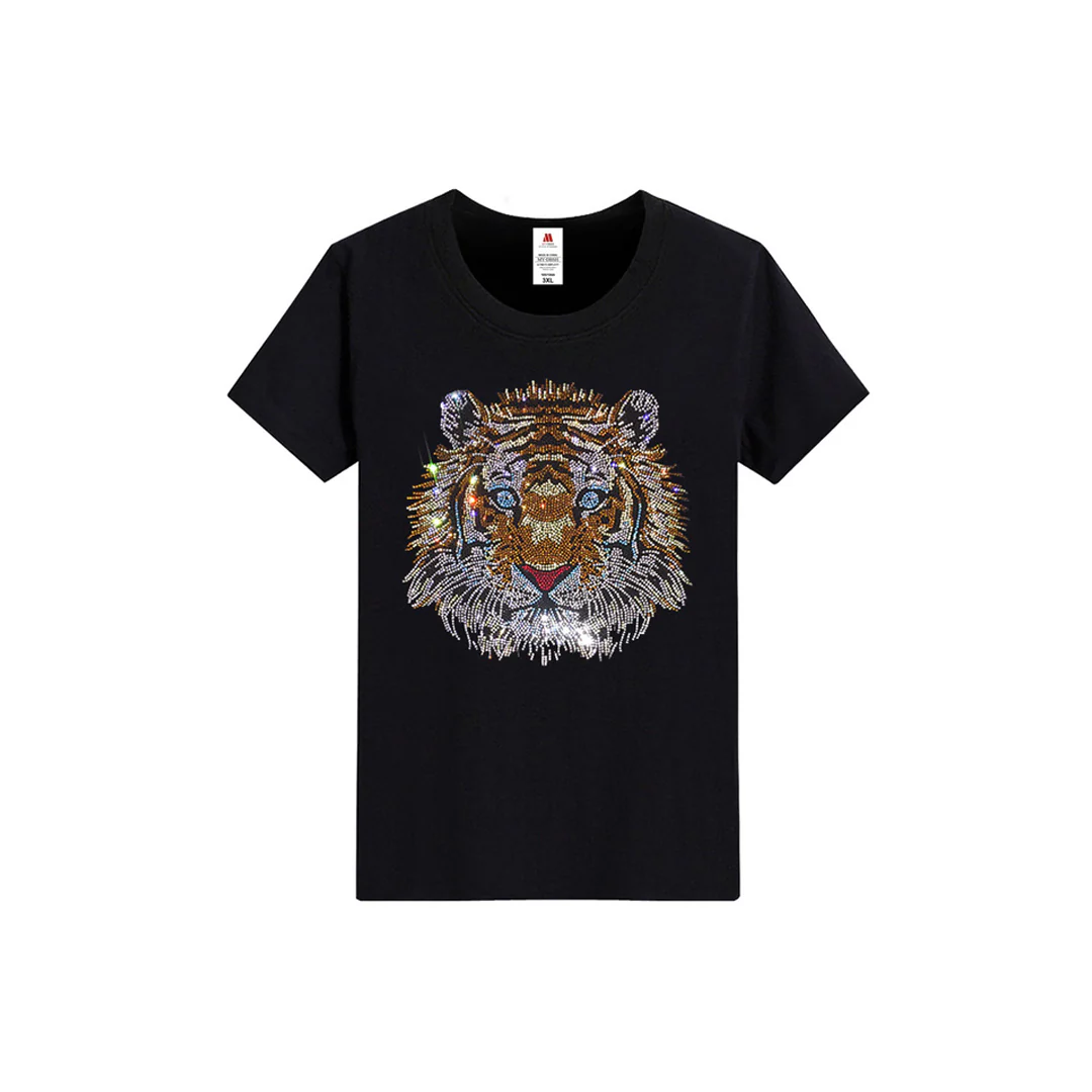 Add some edge to your wardrobe with our Men’s Rhinestone Tiger Print Streetwear Short Sleeve T-Shirt. This stylish and bold shirt features a tiger print with sparkling rhinestones, making it the perfect addition to any hip hop inspired outfit. Made with high-quality materials, this shirt is designed to provide both comfort and durability. The soft and breathable cotton blend material ensures that it’s comfortable to wear all day long.